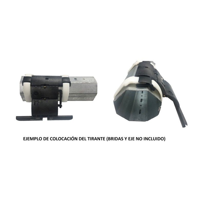 Temos sistemas de fecho . auto-ancoragem (gancho final em forma de seta aberta para inserir na ranhura superior do eixo) e cinta com furos para aparafusar à barra. Temos modelos revestidos de plástico para evitar arranhões e modelos em aço lacado ou polido à vista.