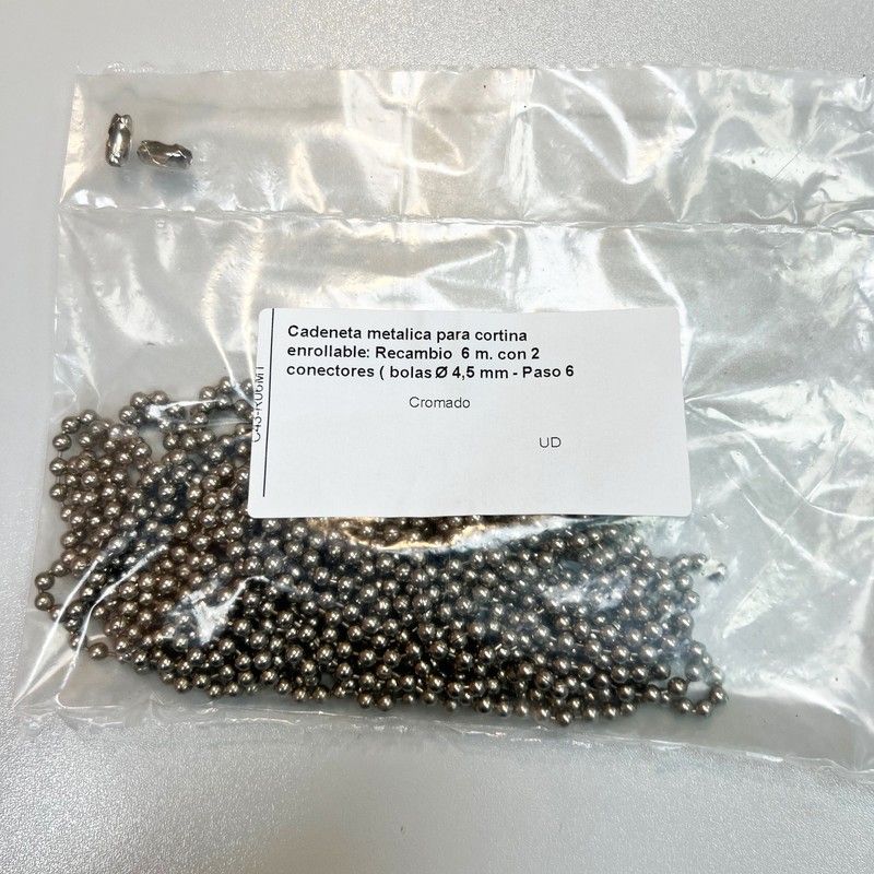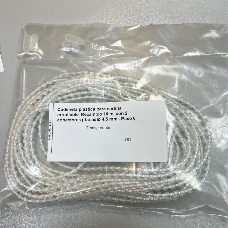 Corrente plástica para persianas de rolo: Substituição 6 m. com 2 conectores (esferas Ø 4,5 mm - Passo 6 mm.)