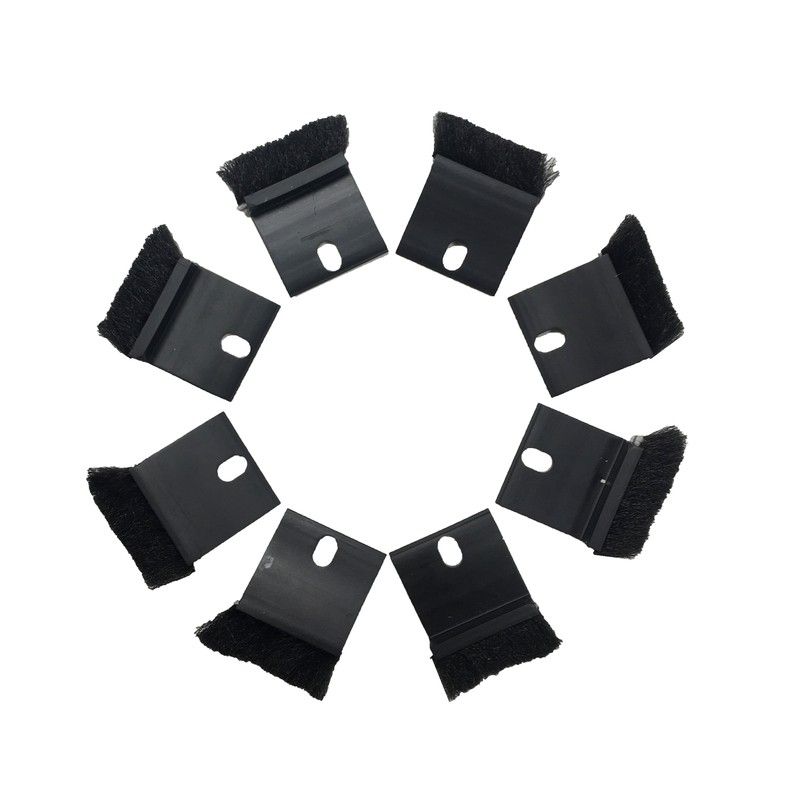 Pacote de 4 pares de escovas térmicas para colocar frente a frente na guia de fita superior de 2 rolos (fita 22mm). Esses quebra-ventos reduzem a entrada de ar frio. Podem ser colocadas sem desmontar a instalação da fita, apenas afrouxando os parafusos do ilhó e colocando as escovas, uma acima e outra abaixo, as matrizes das escovas coincidem com os furos de fixação dos parafusos do ilhó.